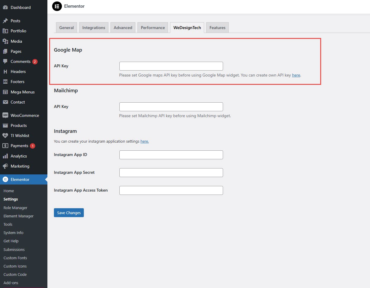 **Steps to Add Google Maps API Key in Elementor (Wedesigntech Theme)**