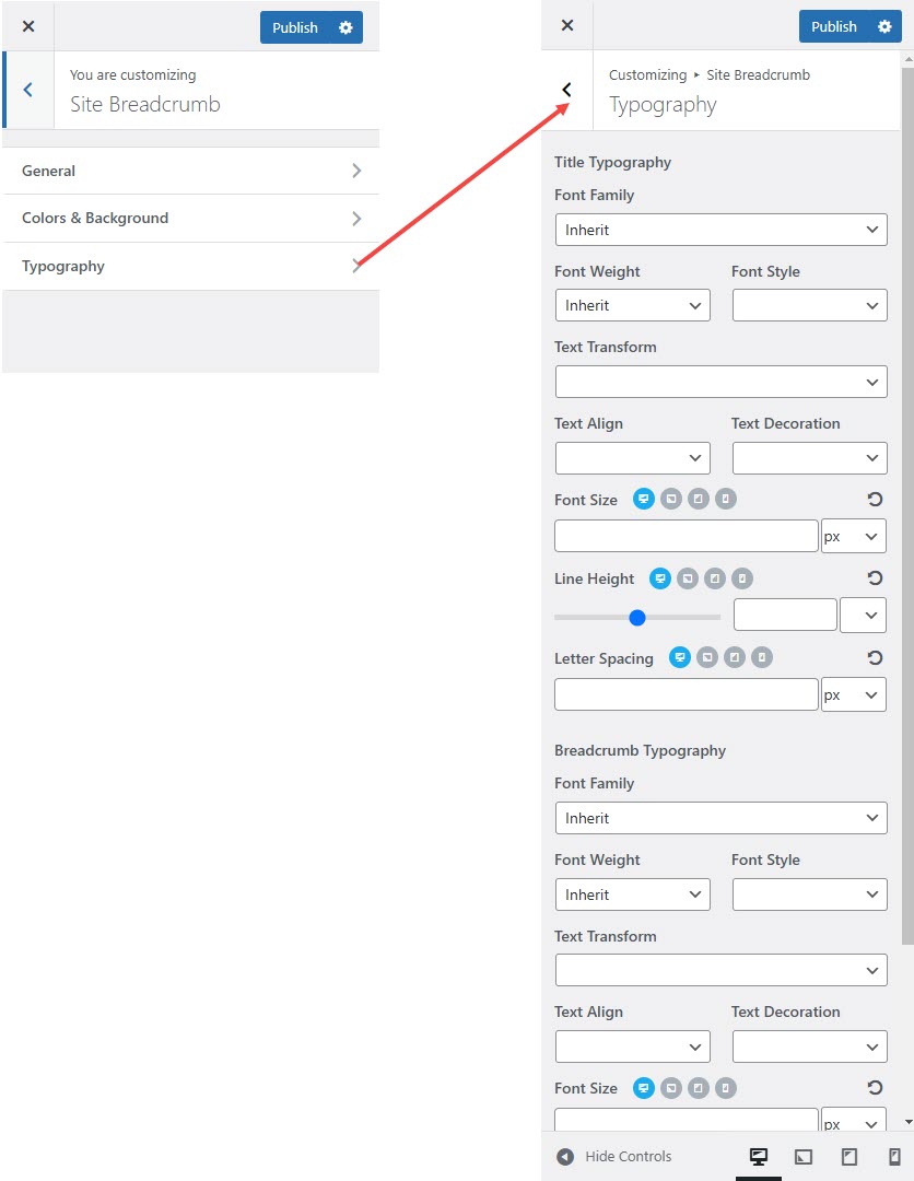 2. Adjust text settings for **Title & Breadcrumb Typography**: