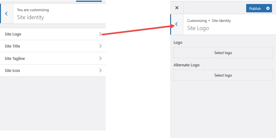* Navigate to **Site Identity → Site Logo.**