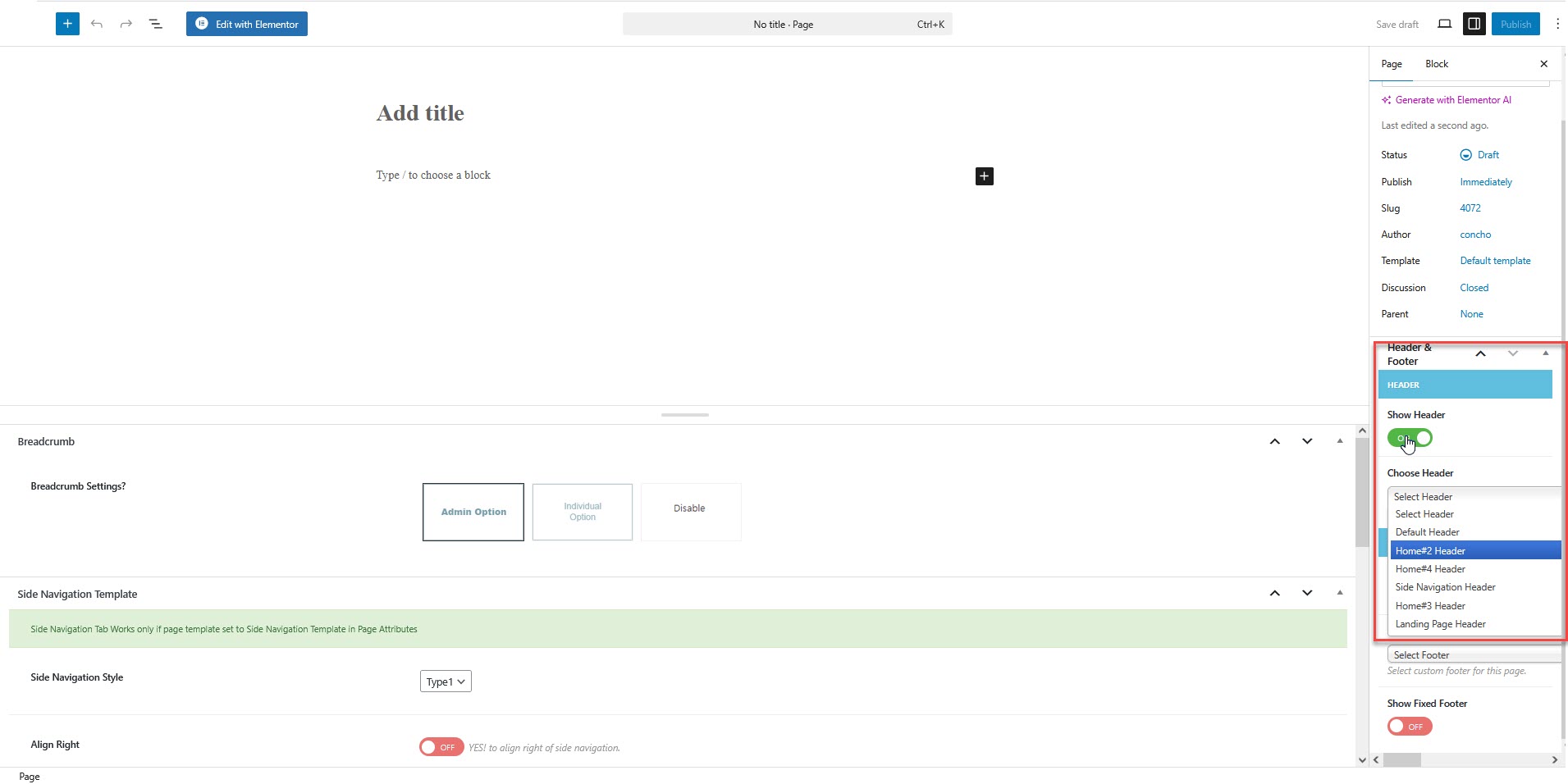 **Step 2 :** Select your **Header Style** for the specific page.