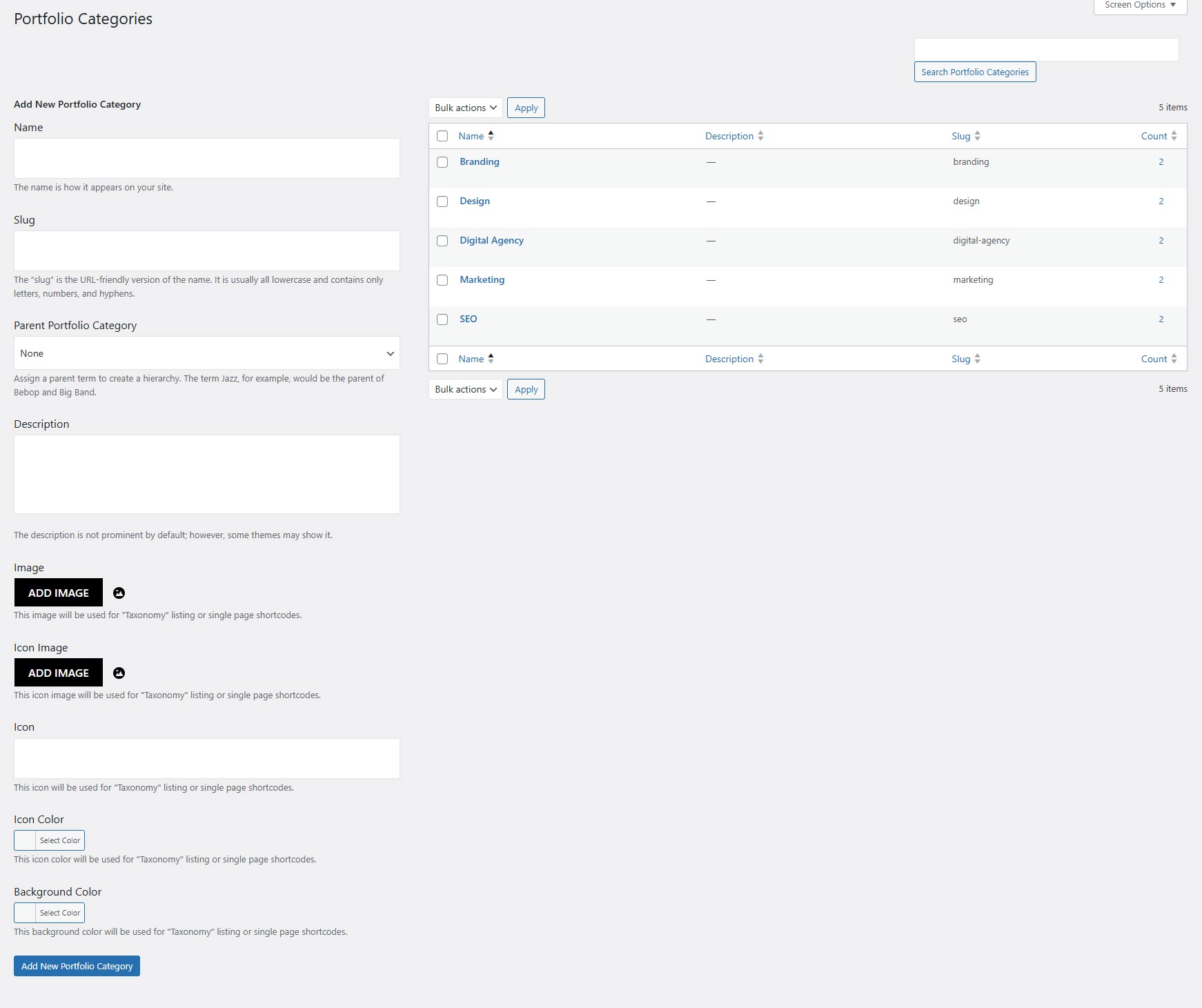 * **Icon Image**: Upload an icon image for portfolio listings.