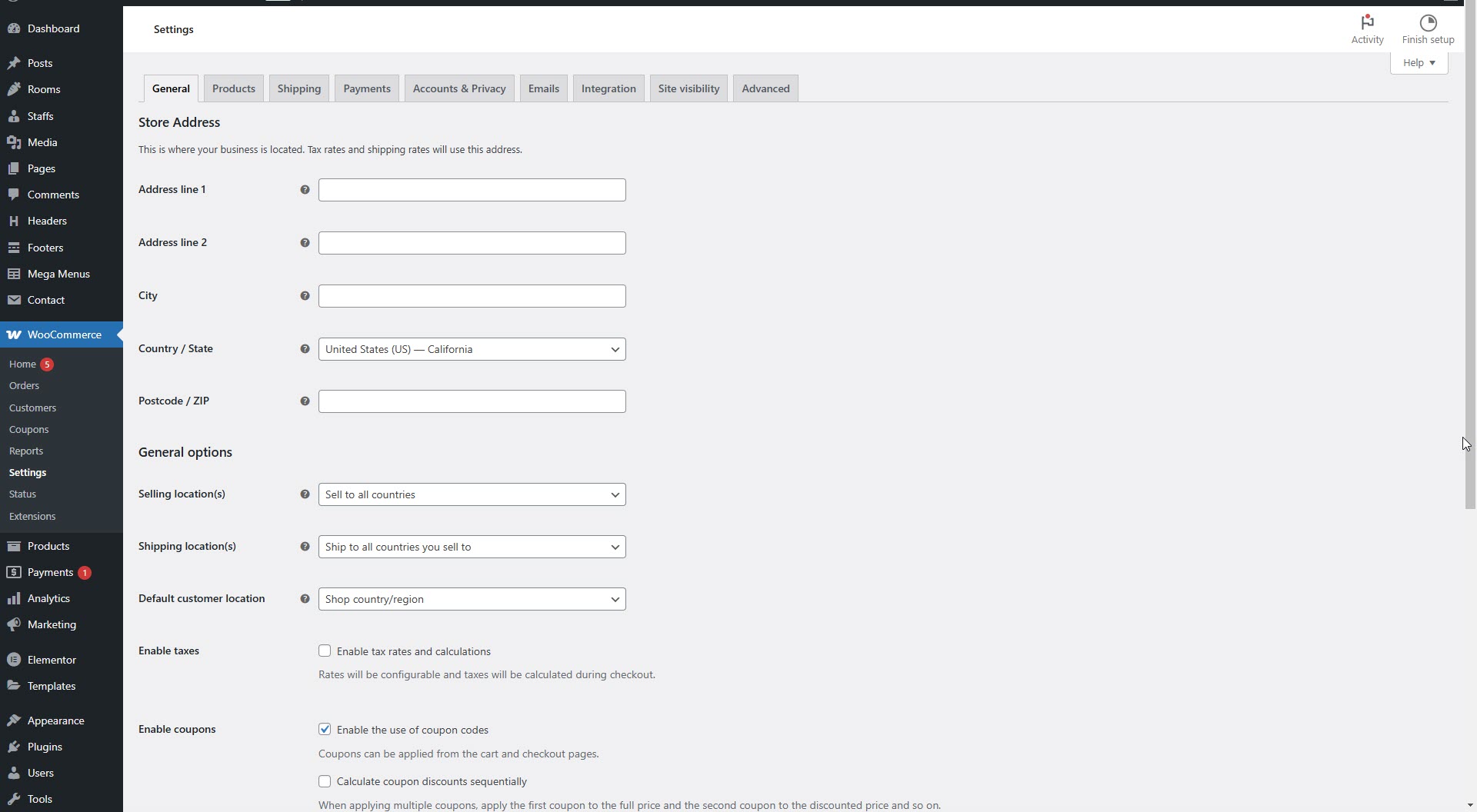 * Ensure you see the WooCommerce settings and product options.