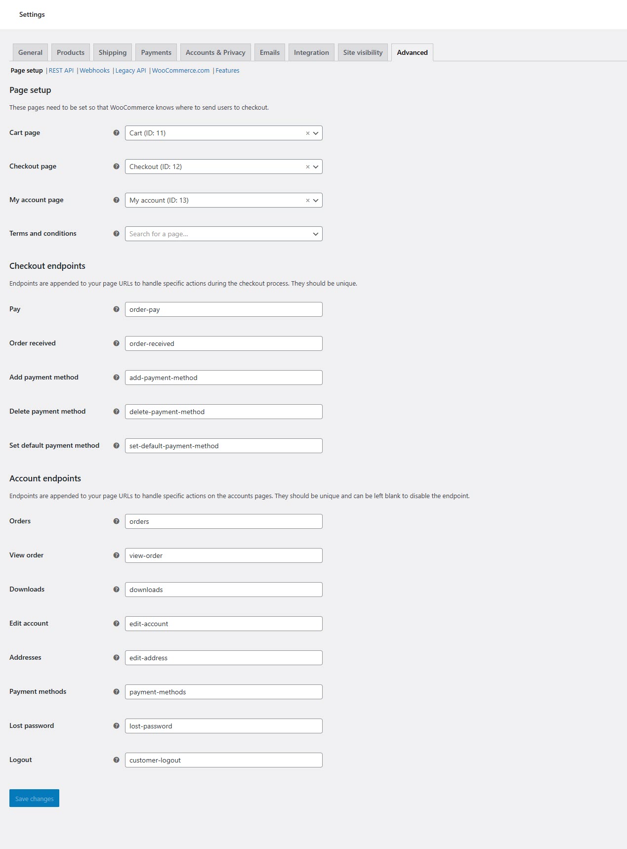 * **Page Setup**: Define pages for cart, checkout, and account management.