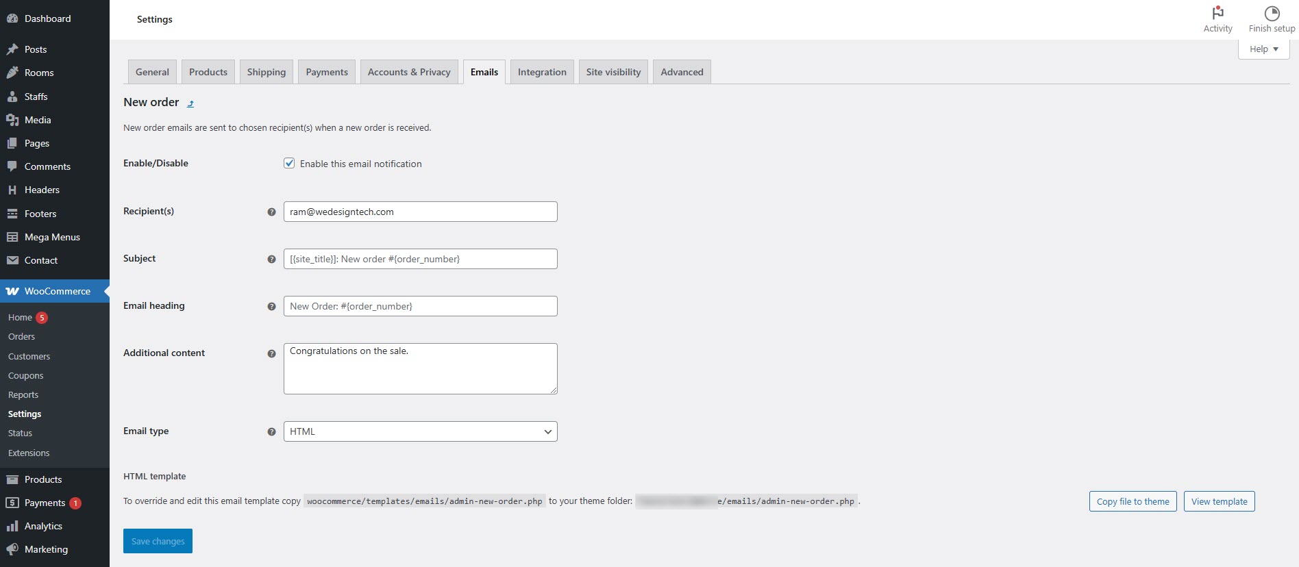 * Customize email templates for order notifications (new order, customer invoice, refunds, etc.).