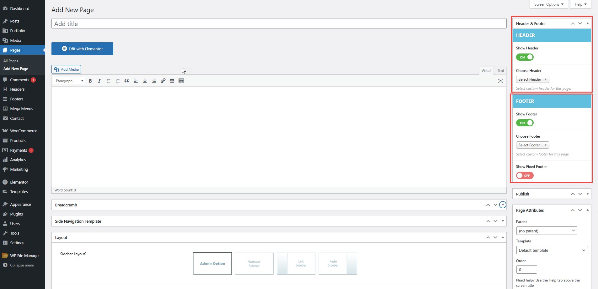 * **Navigate to** **Pages** → select the desired page → click **Edit**. From there, you will see the **Header** and **Footer** options available for customization.