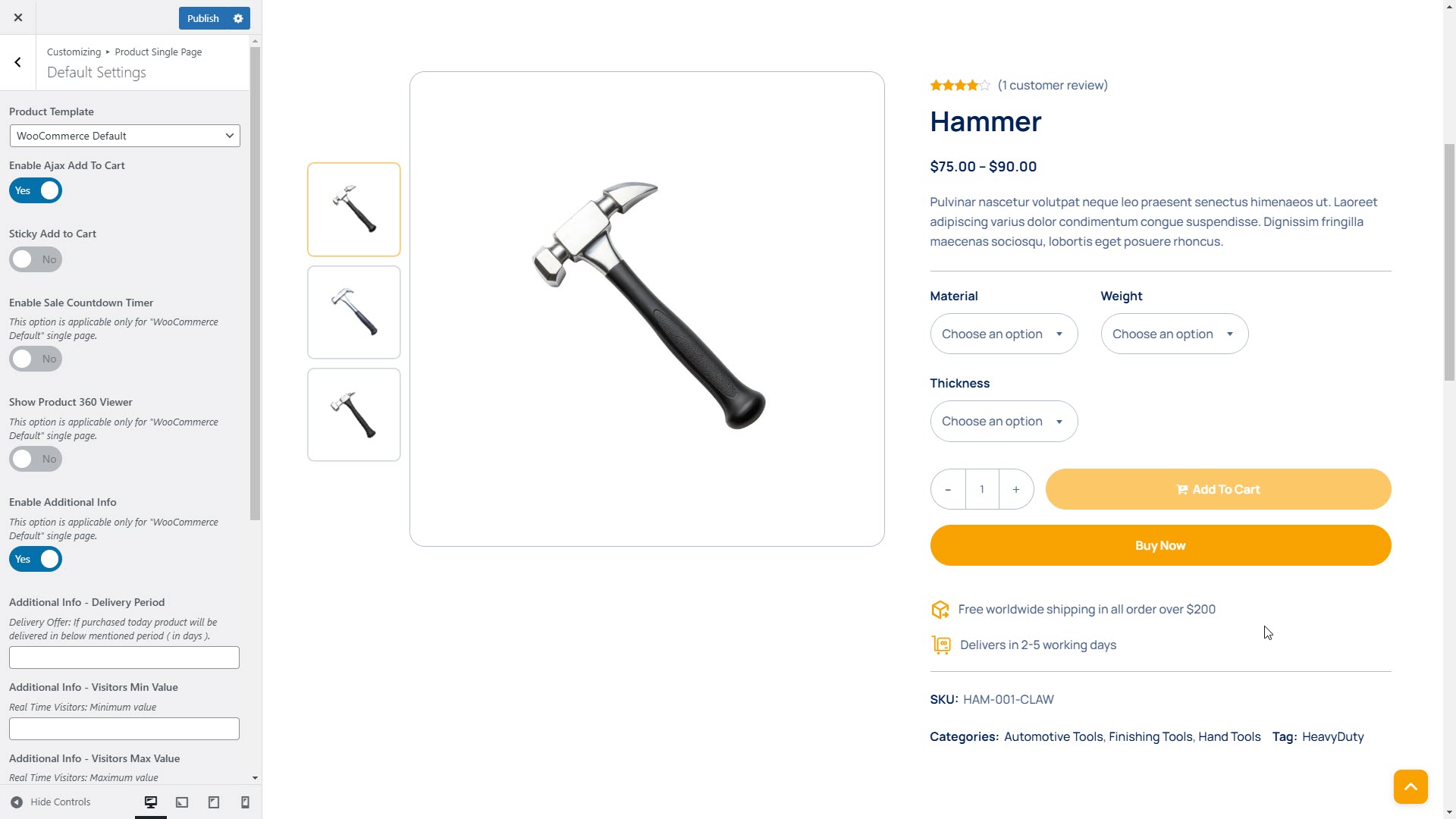 * Use the **Preview** option to see your updated **Single Product Page**.