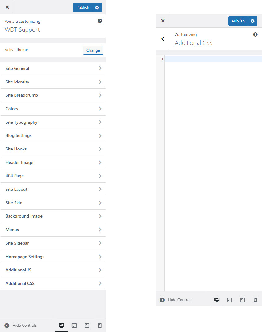 **Additional CSS** section in the WordPress Customizer allows you to add custom CSS to style your site without modifying theme files.