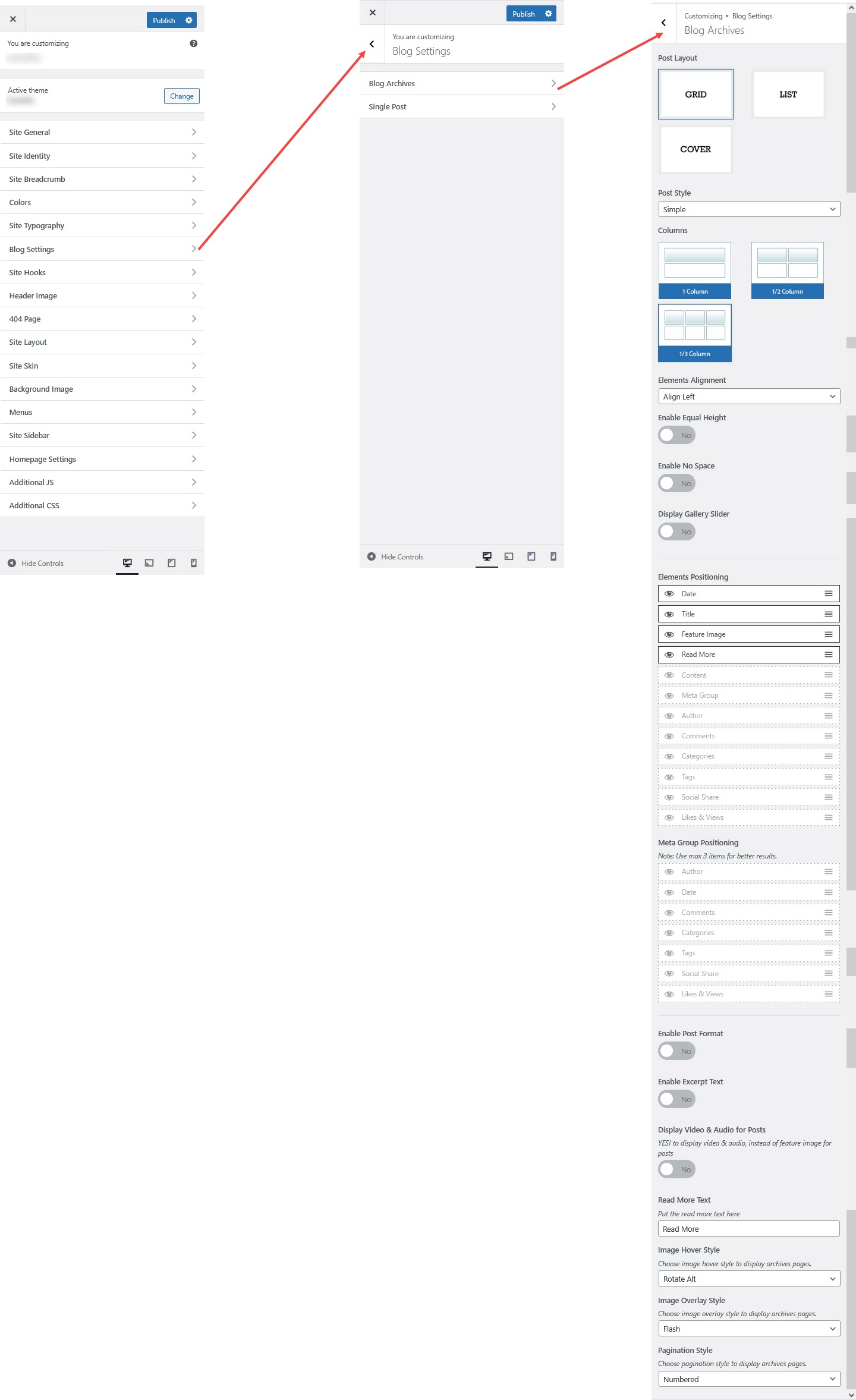 Under **Appearance → Customize → Blog Settings → Blog Archives**, you can adjust the layout and styling of your blog archive pages.