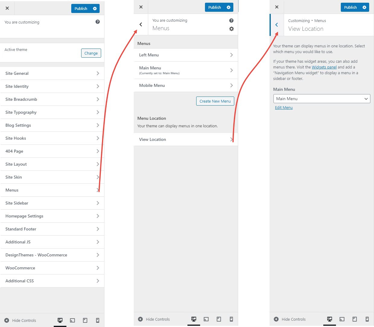 * Assign menus to specific theme locations (e.g., Primary, Secondary, Footer, Mobile).