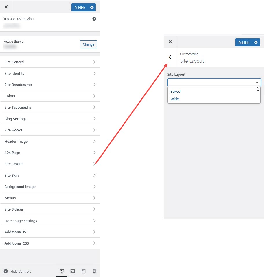 **Step 2 :** Go to **Appearance** > **Customize > Site Layout**.