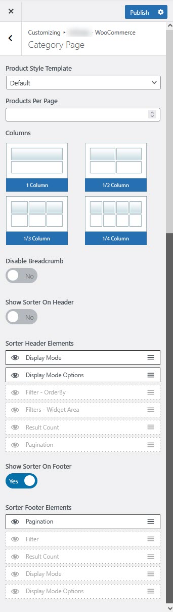 **Show Sorter On Header :** Enable or disable the sorter bar at the top of the category page.