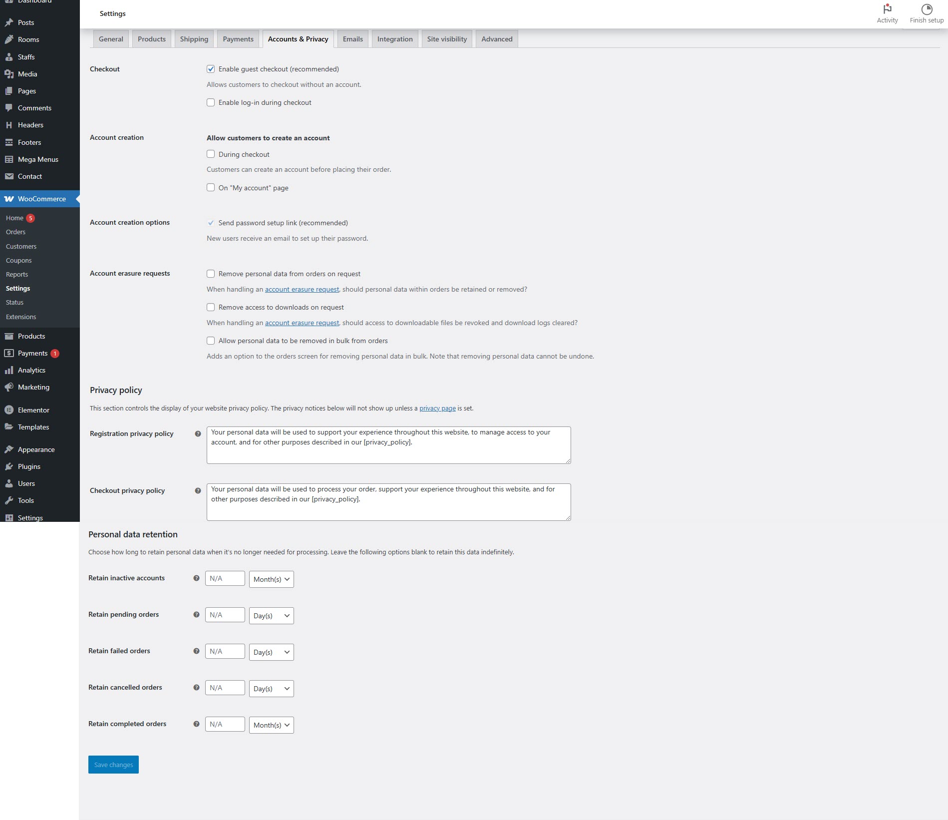 * Go to **WooCommerce** > **Settings** > **Accounts & Privacy**.